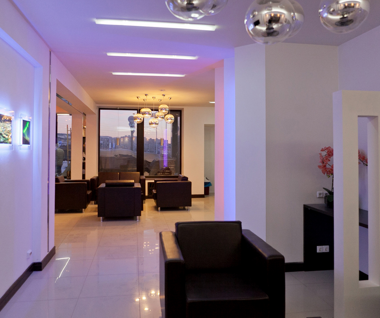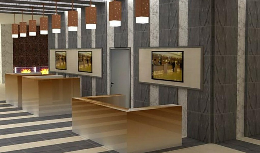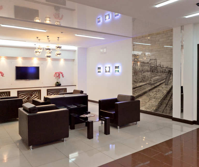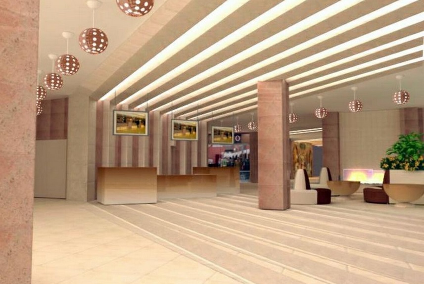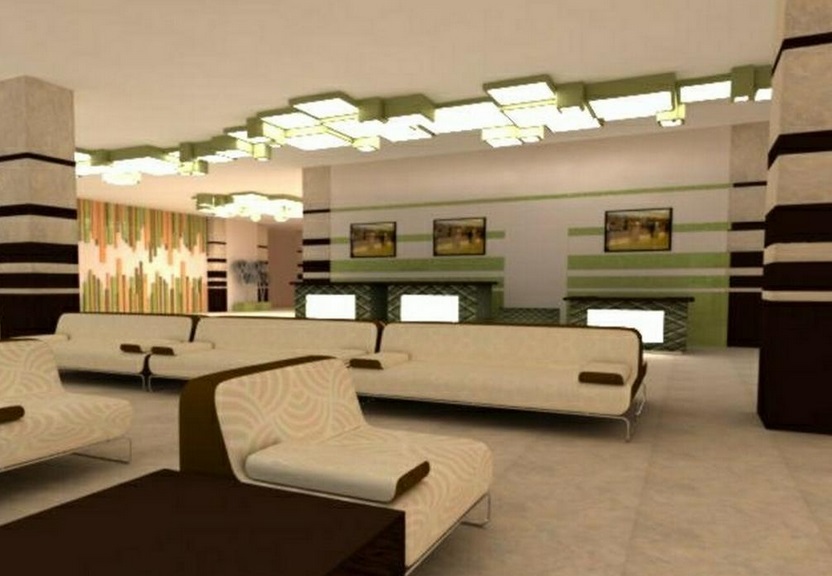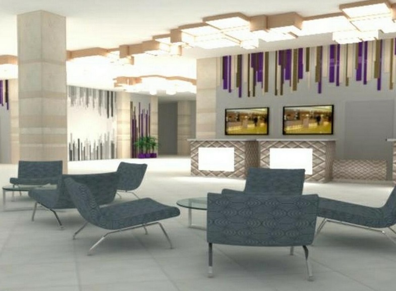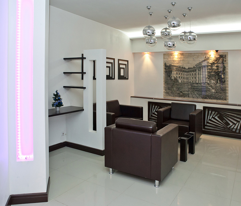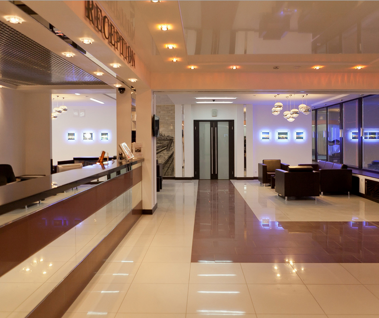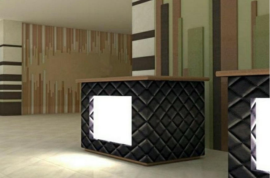 Мы проводим работы по отделке комнат, холла, стойки ресепшн.